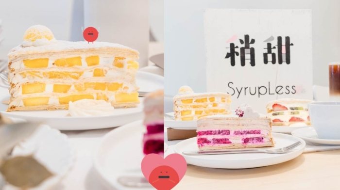 稍甜 SyrupLess 臺北市中山區遼寧街57巷2號 週一至週日 12:00–20:00 小山園抹茶提拉米蘇、綜合水果千層