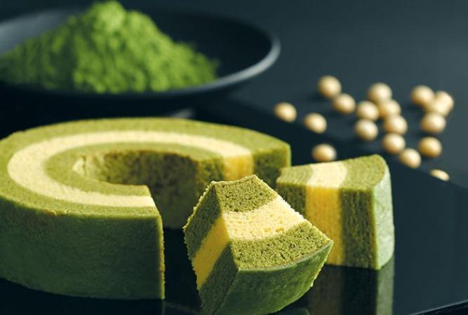 「京都銘菓OTABE」的年輪蛋糕「京ばあむ」,自2008年推出以來就席捲人心,成為赴京都必買的新興伴手禮。蛋糕的白色部份是以用京都純=純淨地下水熬煮的豆漿製成,同樣的材料再加上宇治抹茶與煎茶調合烘烤成綠色部份,綠白相間的模樣不僅賞心悅目,一咬下濃郁的抹茶香還會在口中擴散開來。