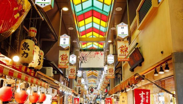 被譽為「京都的廚房」的錦市場商店街,至今已有400年的歷史。除了販售生鮮蔬果、加工食品外,京都具代表性的醬菜、茶、和菓子、小物雜貨等應有盡有。必買清單上的東西,不怕找不到,只怕買不完。商店街內加蓋有拱形屋頂,即使下雨天也能安心盡享購物之樂。