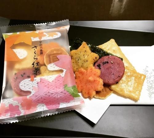 想要送禮最推薦人氣第1的「櫻紅葉」仙貝禮盒,包含櫻花、紅葉造型的8種仙貝,其包裝紙描繪了書中「宇治十帖」的世界觀,口味豐富又可以感受日本風情,很適合喜愛仙貝、米菓的人。